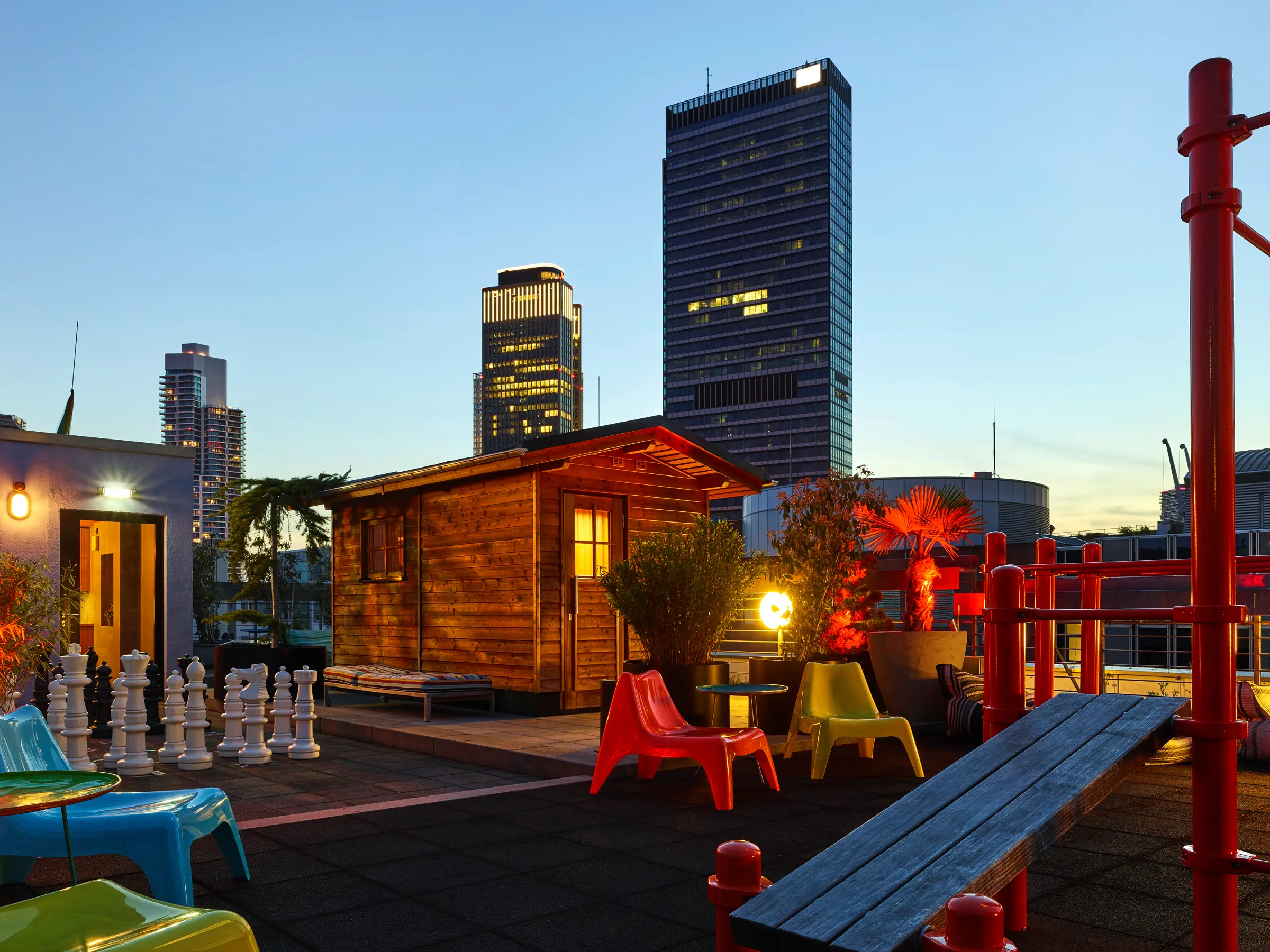 Around the World in a Day. Ein Hotel wie eine Weltreise mit 152 lässigen Rückzugsorten inspiriert von verschiedenen Kontinenten, Landschaften und Expeditionen rund um den Globus. Der Frankfurter Künstler Michael Dreher und das Team von Morgen Interiors holen die ganze Welt ins Frankfurter Bahnhofsviertel, mit dem orientalischen Restaurant BARSHUKA, der japanischen SHUKA BAR, flexiblen Co-Working-Plätzen im Studio 54 und der Dachterrasse mit Calisthenicsgerüst und finnischer Sauna.