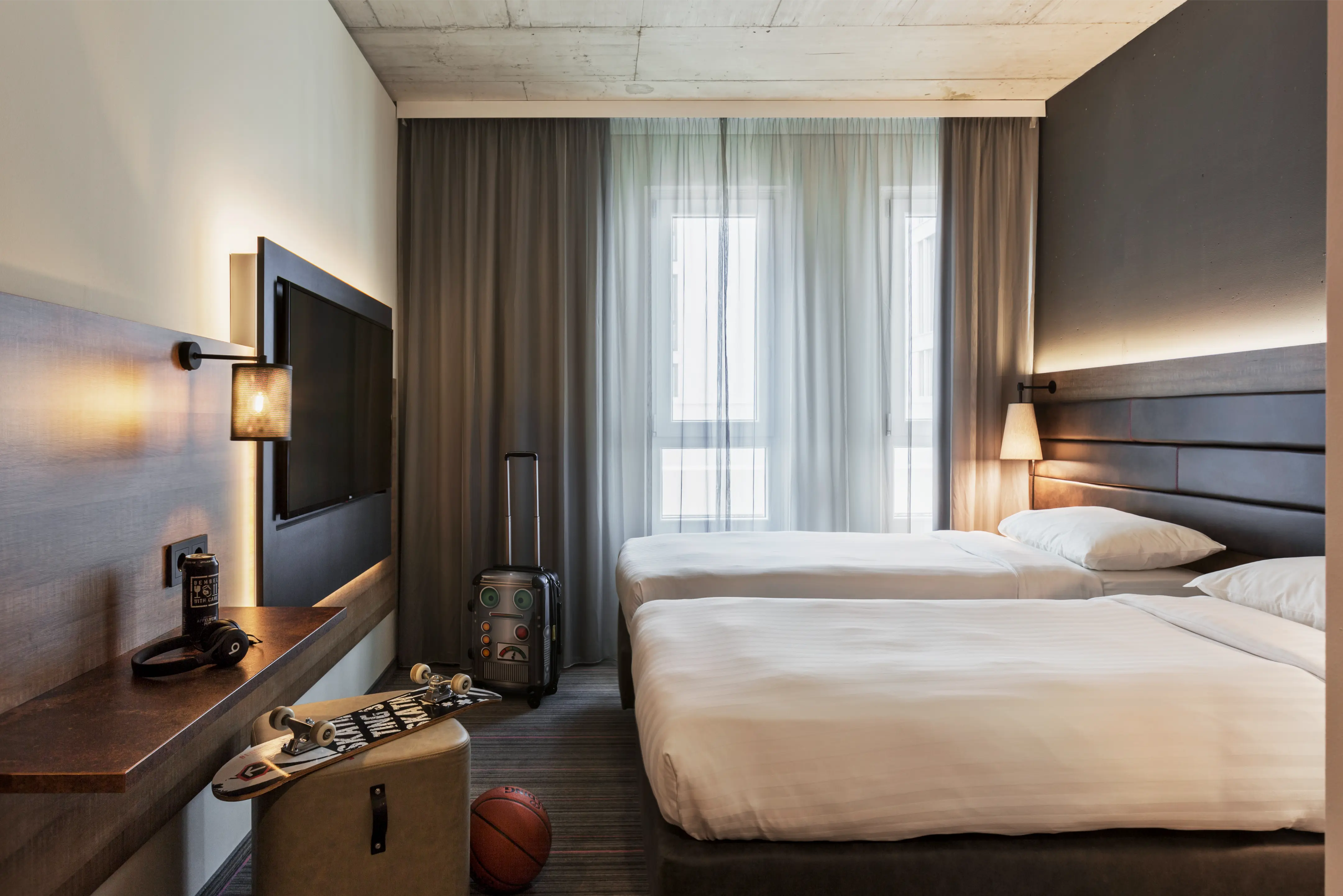 Mit seiner raffinierten Atmosphäre ist das Moxy Frankfurt East ein modernes Design-Hotel in Frankfurt am Main. Entspanne dich in unseren gemütlichen Gästezimmern mit gemütlicher Einrichtung, großen Fernsehern und Walk-In Duschen. Nachdem du beim World Club Dome gefeiert hast, kannst du an unserer Bar oder im 24/7 Grab & Go des Hotels köstliche Snacks und Getränke genießen. Bei der Marke MOXY steht Charakter im Mittelpunkt. Unser Design-Hotel vereint den Komfort der Großstadt Frankfurt mit Erschwinglichkeit, coolen, gemeinschaftlichen Flächen und freundlichem Personal.