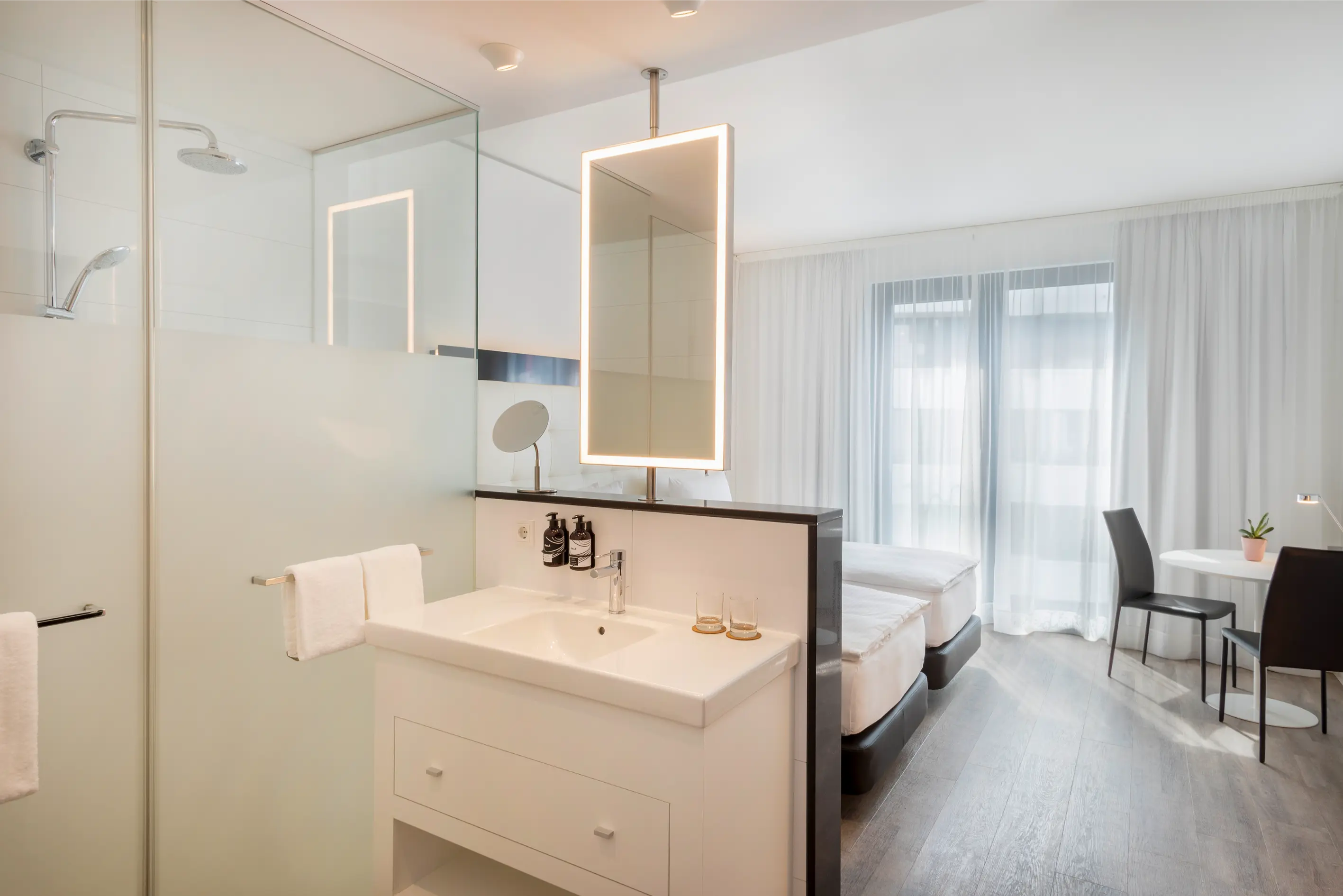 Deutsches Design und Zweckmäßigkeit dieses City-Hotels ergänzen sich perfekt. Die ideale Unterkunft zum Erkunden dieser weltoffenen Stadt Deutschlands. Mitten im Ostend-Viertel im Osten Frankfurts gegenüber der Europäischen Zentralbank. Alles in diesem Hotel garantiert Ihnen den Genuss eines höchst zeitgemäßen und zukunftsorientierten Erlebnisses.
