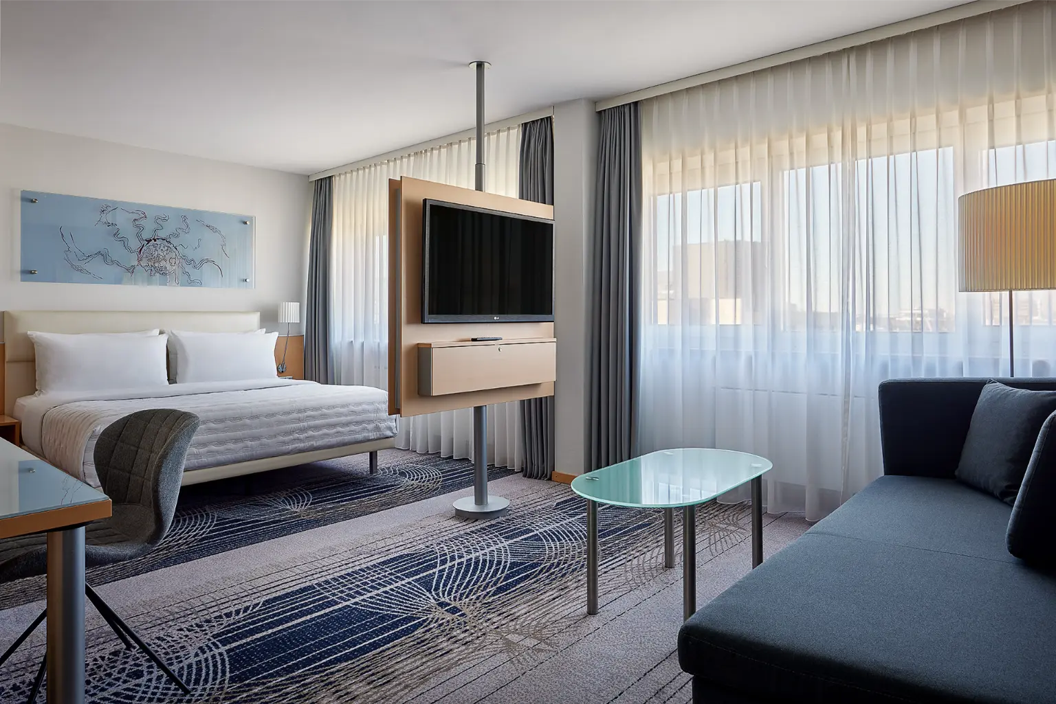 Located next to Frankfurt’s main train station, Le Méridien Frankfurt offers a stylish and convenient stay for both business and leisure travelers. The hotel blends historical elegance with modern design, creating a unique and welcoming atmosphere. Guests can choose between 220 contemporary rooms in the Legacy Wing and 80 classic rooms in the historic Palais, featuring high ceilings and refined décor. With 7 flexible meeting rooms, the hotel is also ideal for corporate events. Culinary highlights await at The Legacy Bar & Grill, known for its smoked and grilled specialties in a vibrant setting. Art enthusiasts can explore local culture through the Unlock Art™ program, which provides exclusive access to the renowned SCHIRN art gallery. With its central location and thoughtful amenities, Le Méridien Frankfurt is the perfect gateway to discover the city’s business, culture, and charm.