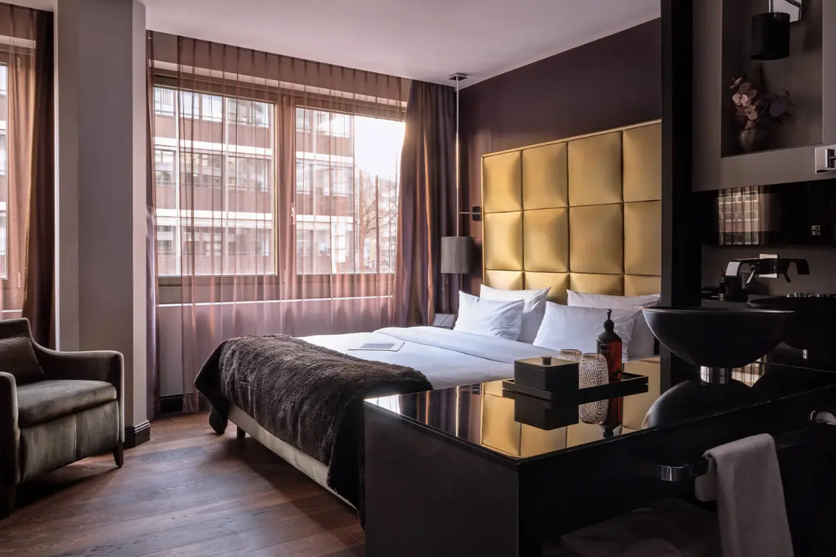 Unsere 24 qm großen Superior Rooms verfügen über ein gemütliches und geräumiges Queensize Bett, ein separates Badezimmer mit Dusche/Badewanne, eine erfrischende Minibar, einen Flatscreen-TV, einen Marshall Speaker sowie kostenfreies WLAN.