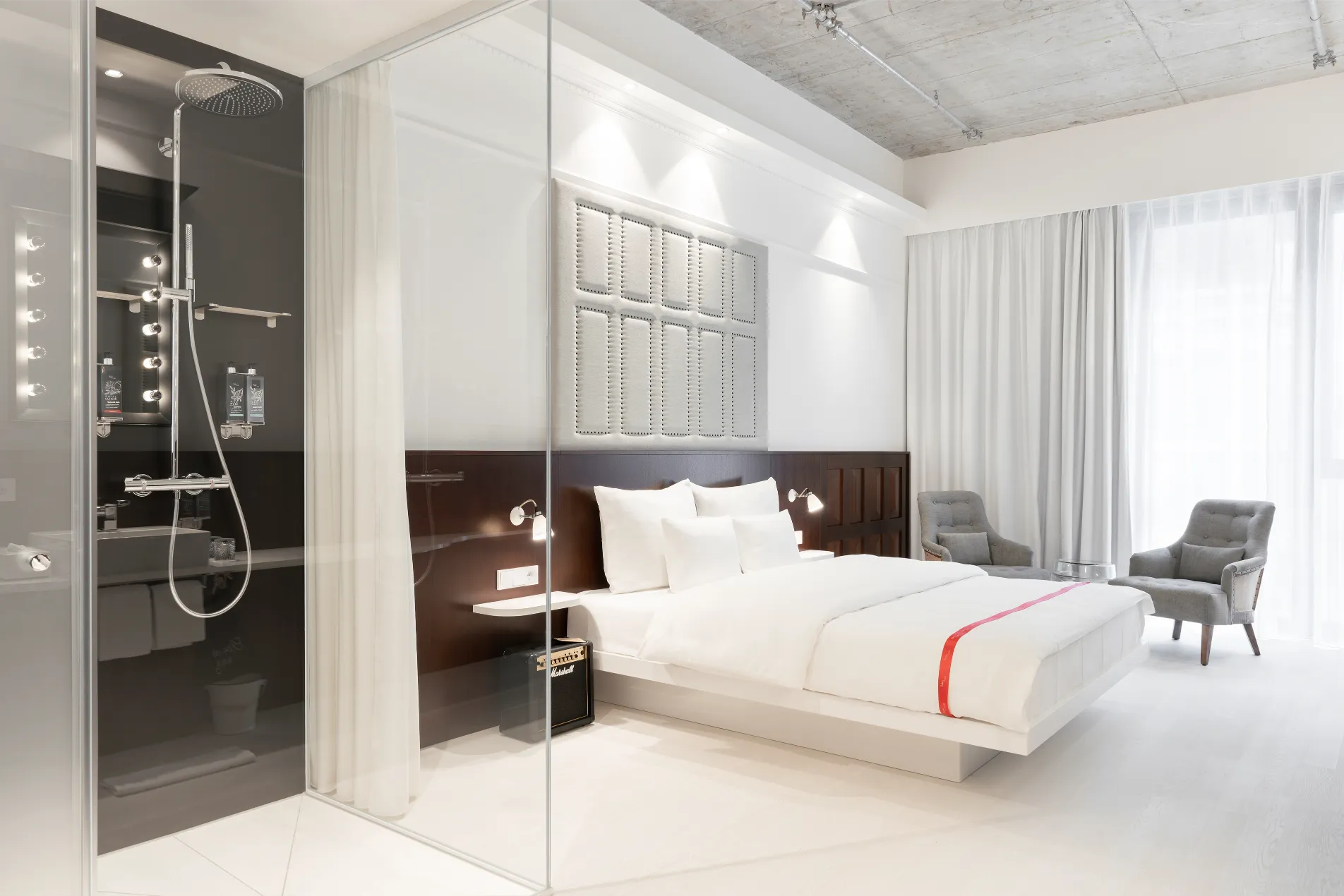 Jedes Zimmer in der Ruby Louise ist eine Wohlfühloase im Lean Luxury-Stil. Von der luxuriösen Taschenfederkernmatratze und den extragroßen Betten, über Schallisolierung, bis hin zur Regendusche und den Ruby Care Aromatherapieprodukten ist alles auf Entspannung und erholsamen Schlaf ausgerichtet. Also tritt ein, dimm das Licht und komm zur Ruhe.